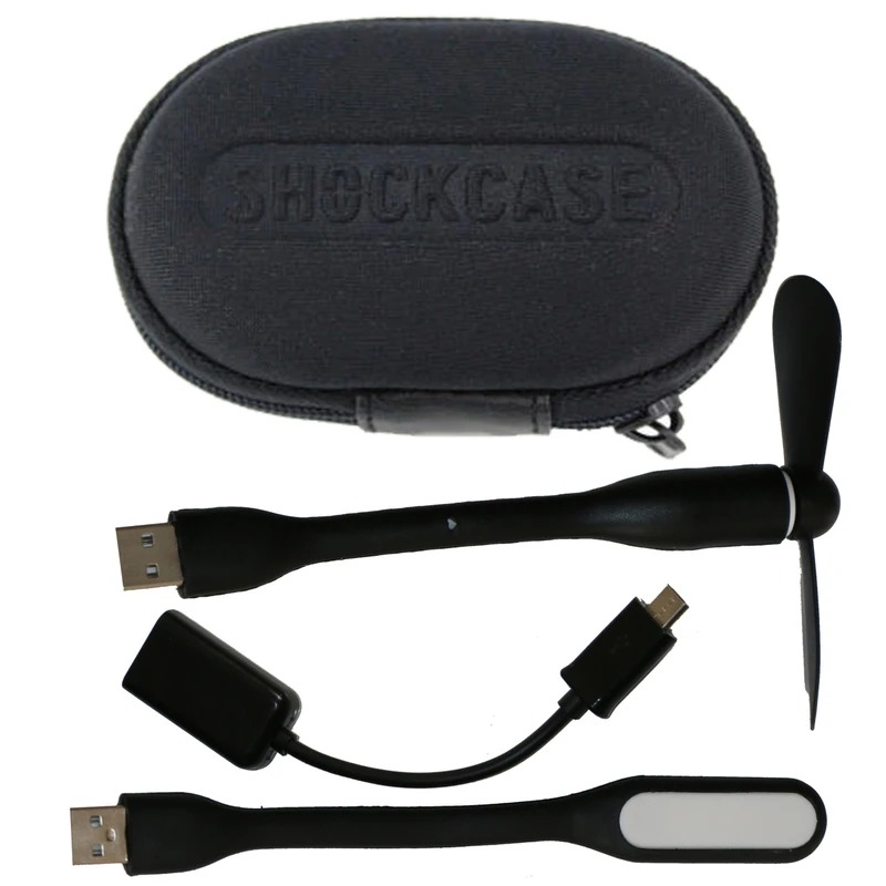 پنکه همراه مدل Mini USB می تواند هنگام کار با کامپیوتر شخصی خنکی مناسبی ایجاد کرده و همواره همراه شما باشد. سبک و کم حجم بودن از ویژگی های منحصر به فرد این پنکه همراه می باشد که می تواند به آسانی حتی در جیب شما جای بگیرد. چراغ LED همراه این پنکه نیز می تواند در تاریکی به یاری شما آمده و استفاده از کامپیوتر شخصی را بهبود ببخشد. انعطاف پذیر بودن هر سه محصول جهت تنظیم جهت باد و نور از ویژگی های خاص این محصولات می باشد. همچنین کیف محافظ و حمل شاک کیس بدنه ای کاملا مقاوم دارد. قسمت داخلی کیف محافظ شاک کیس از دو بخش جیب بافته شده و معمولی تشکیل شده است که محل مناسبی برای حمل ایمن و محافظت از وسایل و گجت های کوچکی مانند هندزفری، فلش مموری، کابل شارژ، کارت حافظه و … می باشد. کیف محافظ شاک کیس کاملا سبک و قابل حمل است. بنابراین کاربران می توانند با خیالی آسوده هندزفری یا کابل ها را که احتمال پارگی و قطعی سیم های آن ها بالاست را در این کیف قرار دهند. ابعاد حدودی کیف برابر با 40×70×100 میلی متر و ابعاد داخلی آن 60 × 90 میلی متر می باشد. بنابراین می توان به راحتی آن را در کیف لپ تاپ قرار داد و یا در دست حمل کرد. کیف محافظ و حمل هندزفری، کابل شارژ، فلش مموری و … شاک کیس جا به جایی ایمن و بدون دردسر را برای شما به ارمغان می آورد و می تواند ابزاری مناسب برای هر شخصی باشد.